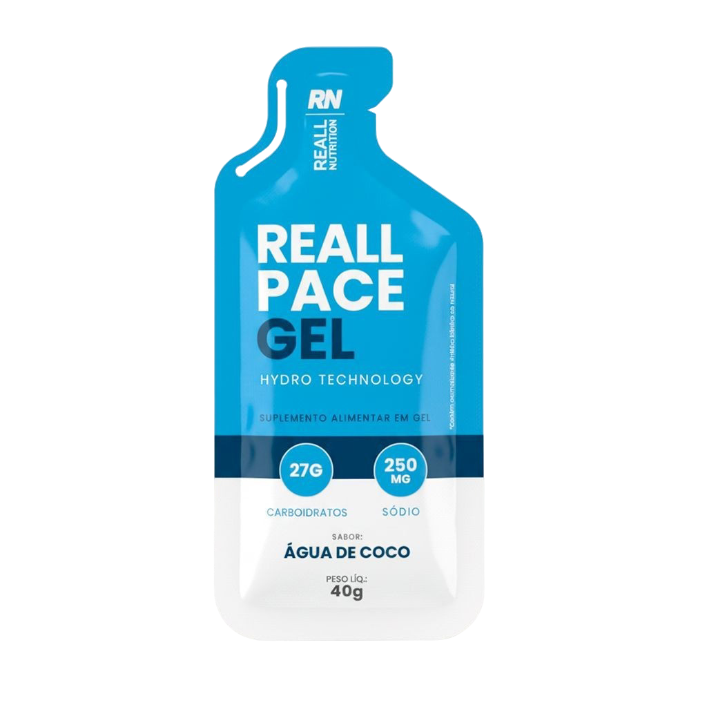 Com 27g de carboidrato, 250mg de sódio e 100mg de potássio, o Reall Pace Gel Água de Coco combina leveza, refrescância e reposição de eletrólitos, promovendo performance duradoura e sem desconforto gástrico.